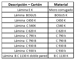 Lámina doble pared: Es el resultado de 3 láminas planas más 2 láminas onduladas, este tipo de cartón es muy resistente y es usado para artículos de peso considerable.